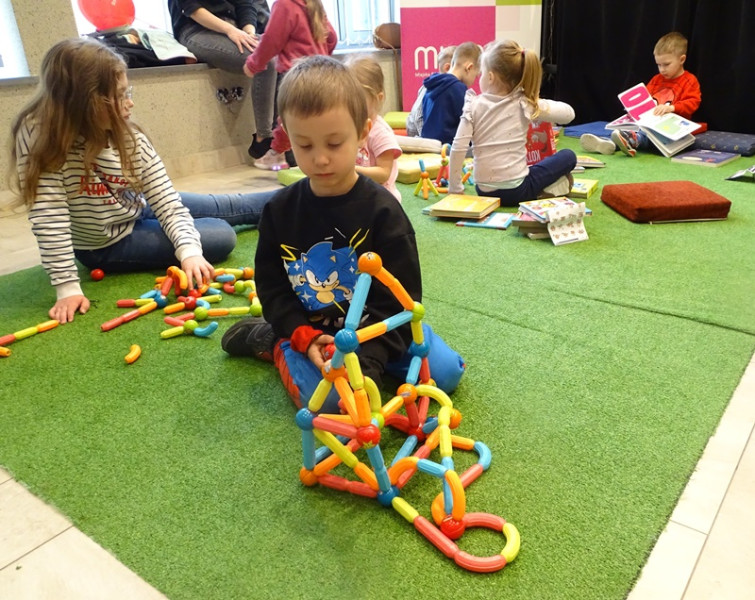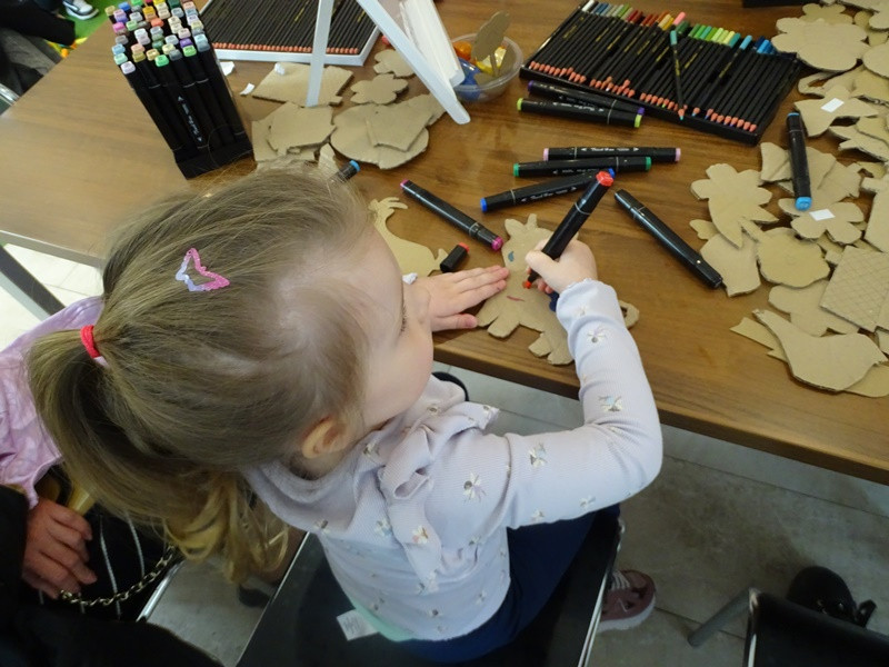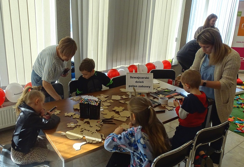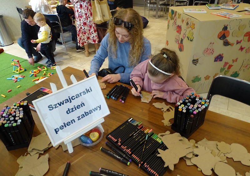 Biblioteka przygotowała specjalną ofertę zajęć dla najmłodszych uczestników wydarzenia, stawiając przede wszystkim na kreatywność, zabawę i edukację inspirowaną Szwajcarią. Dzieci uczestniczyły w warsztatach plastycznych, podczas których tworzyły prace przedstawiające alpejskie krajobrazy – z górami, domkami, zwierzętami i łąkami. Każdy uczestnik mógł samodzielnie komponować swoją pracę, rozwijając wyobraźnię oraz zdolności manualne. Dużym zainteresowaniem cieszyła się także aktywność polegająca na wykonywaniu „szwajcarskich zegarów dnia”. Na papierowych talerzykach dzieci przygotowywały własne tarcze, ozdabiając je motywami kojarzącymi się ze Szwajcarią, takimi jak góry, ser, czekolada czy tradycyjne domki. Powstałe prace stanowiły pamiątkę po zajęciach i były efektem indywidualnej twórczości najmłodszych. Biblioteka zadbała również o przestrzeń do swobodnej zabawy i wyciszenia, organizując kącik malucha. Dzieci mogły tam korzystać z klocków oraz przeglądać książki dostępne w placówce. Dzień Czekolady w Jaśle okazał się wydarzeniem łączącym kulturę, edukację i dobrą zabawę, a udział biblioteki podkreślił jej aktywne zaangażowanie w inicjatywy skierowane do mieszkańców miasta, zwłaszcza najmłodszych.