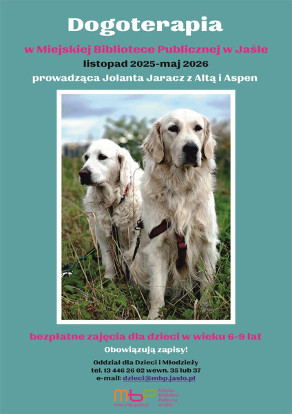Miejska Biblioteka Publiczna zaprasza na cykl zajęć dogoterapetycznych, które poprowadzi Jolanta Jaracz.