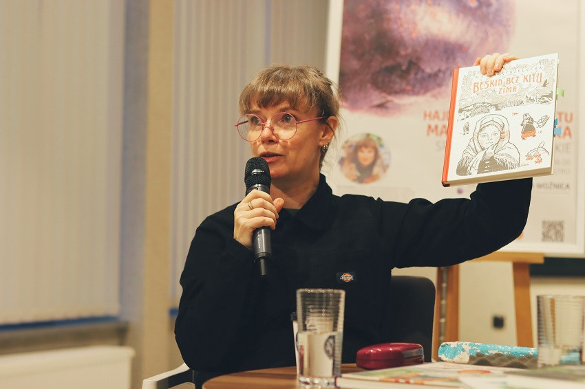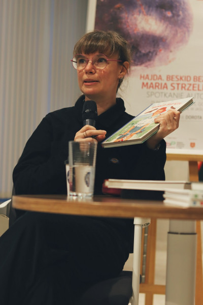 Maria Strzelecka – artystka, ilustratorka, autorka cyklu „Beskid bez kitu”. Spotkała się z czytelnikami młodszymi i starszymi, by opowiedzieć o powstawaniu swoich książek, o miłości do natury i Beskidu Niskiego, który zajmuje w jej sercu szczególne miejsce.