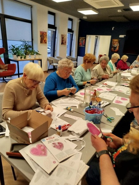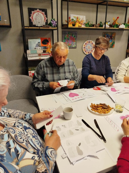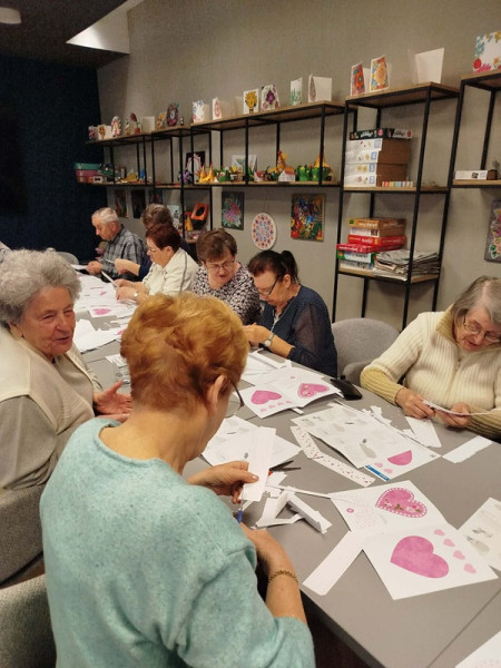 Podczas spotkania seniorzy mieli okazję wykonać ozdobne przestrzenne pudełeczka z kartonu w kształcie serca. Praca wymagała precyzji, cierpliwości oraz odrobiny wyobraźni, jednak efekty końcowe zdecydowanie wynagrodziły włożony wysiłek. Zajęcia przebiegały w miłej i swobodnej atmosferze, sprzyjającej rozmowom oraz integracji. Dla wielu osób była to nie tylko okazja do rozwijania zdolności manualnych, ale także sposób na aktywne spędzenie czasu i oderwanie się od codziennych obowiązków. Warsztaty w Centrum Aktywnego Seniora pokazały, jak ważne są inicjatywy wspierające aktywizację osób starszych i tworzące przestrzeń do twórczego działania.