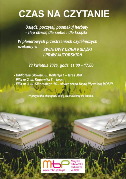 Dodatkowo odwiedzający bibliotekę tego dnia będą mogli wziąć udział w innych aktywnościach, m.in. akcji Czas na czytanie. Szczegóły www.mbp.jaslo.pl.