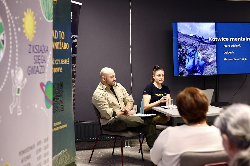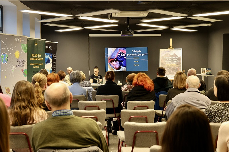 „Road to the Top. Góry, które są na wyciągnięcie ręki – jak zacząć i się nie zgubić” – pod takim hasłem odbyło się spotkanie z Justyną Karpałą i Tomaszem Oleszkowiczem, podróżnikami, uczestnikami i organizatorami wypraw wysokogórskich oraz autorami książki „Road to Kilimandżaro. Jak zdobyć szczyt i odnaleźć siebie”.