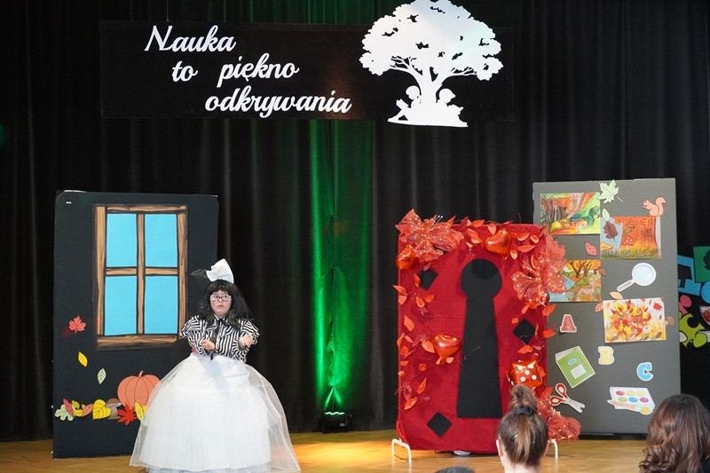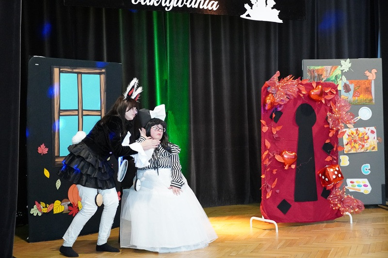 Zwieńczeniem wydarzenia było niezwykłe przedstawienie pt. „Alicja w Krainie Edukacji”  w wykonaniu naszych utalentowanych podopiecznych z SOSW w Jaśle. Spektakl, inspirowany klasyczną opowieścią Lewisa Carrolla, został przekształcony w metaforyczną podróż przez świat edukacji włączającej. W tej wyjątkowej wersji Alicja trafia do krainy, w której każde dziecko – niezależnie od swoich możliwości – znajduje miejsce dla siebie. Spotyka postacie symbolizujące różne style uczenia się, potrzeby edukacyjne i emocjonalne, a także nauczycieli, którzy z otwartym sercem i umysłem towarzyszą uczniom w ich rozwoju. Przedstawienie było nie tylko artystycznym wydarzeniem, ale też głębokim przesłaniem o sile różnorodności, akceptacji i wspólnoty. Publiczność nagrodziła młodych aktorów owacjami na stojąco – to był moment pełen wzruszeń, który na długo pozostanie w naszej pamięci.