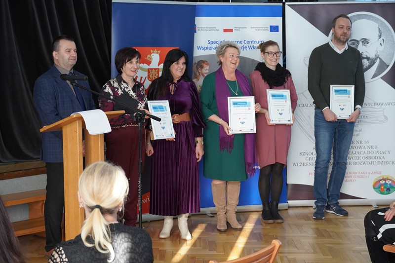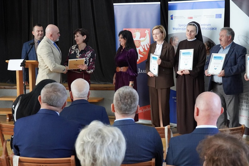i zaangażowaniem realizują ideę edukacji włączającej. Wręczone zostały również certyfikaty partnerstwa i współpracy przedstawicielom placówek oświatowych oraz instytucji działających na rzecz dziecka i rodziny. Aktu tego dokonały:            Wiceprzewodnicząca Rady Powiatu w Jaśle Irena Baciak oraz Przewodnicząca Komisji Edukacji, Kultury, Sportu i Turystyki Cecylia Piwowar-Nadymus.